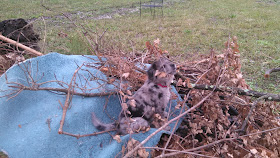 Maggie loves the outdoors. She leapt onto the burn pile happily.